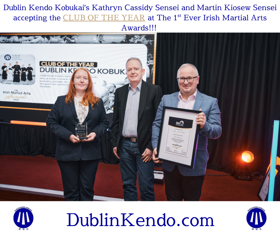 On Saturday, 24th January, 2026, at the 1st ever Irish Martial Arts Awards, hosted by the Irish Martial Arts Commission and Sport Ireland, Dublin Kendo Kobukai received the great honour of being recognized for years of dedication, hard work, and community building within Irish Kendo, Iaido and Jodo.